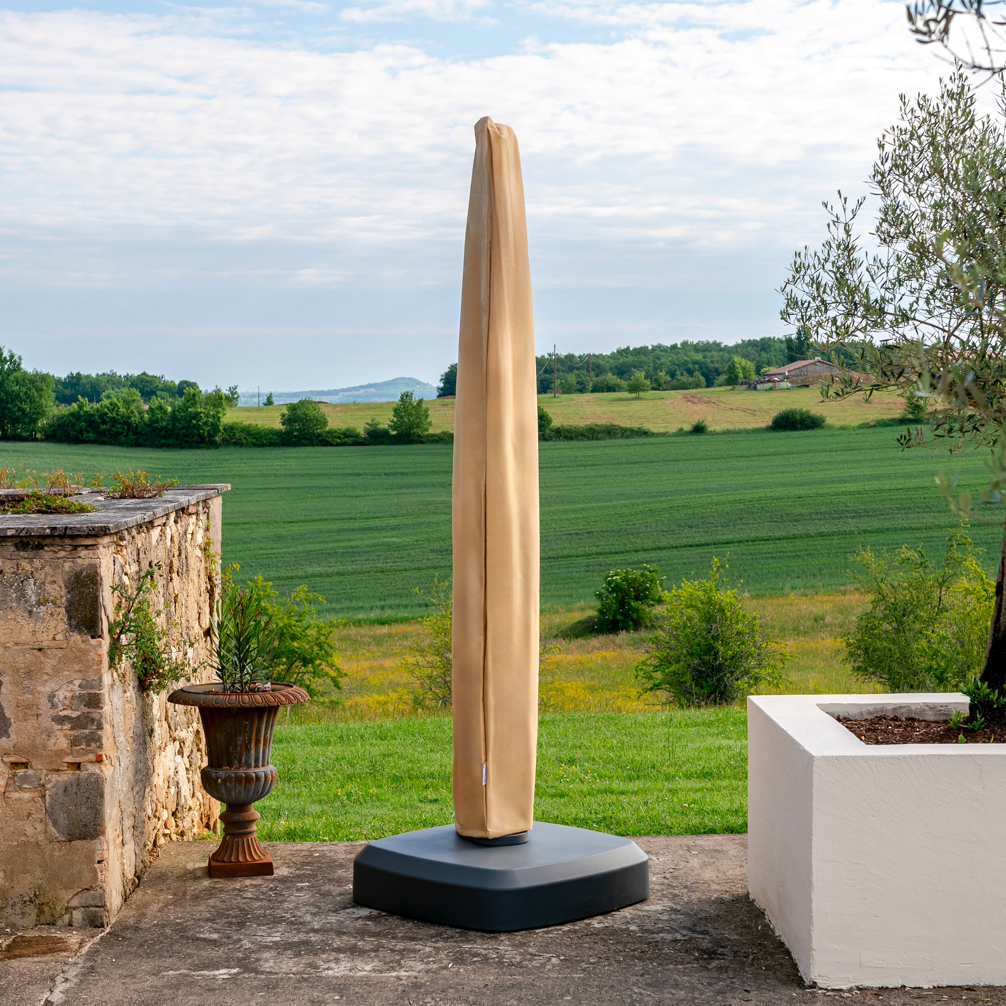 Es el accesorio indispensable para proteger su sombrilla Belveo y mantenerla en el tiempo. Esta funda de protección es compatible con todas nuestras sombrillas excéntricas Belveo y también con nuestras sombrillas rectas Belveo 3x3m. La ventaja de esta funda de protección reside en la presencia de una varilla rígida que permite poner y quitar la funda fácilmente, sin necesidad de utilizar una escalera para alcanzar la parte superior de la sombrilla. Además de proteger su sombrilla contra la humedad y las inclemencias del tiempo, la funda de protección protege la lona contra los rayos del sol y de la luna, reduciendo así el riesgo de decoloración. De hecho, por la noche, los rayos lunares también desempeñan un papel muy importante en la decoloración de los tejidos.