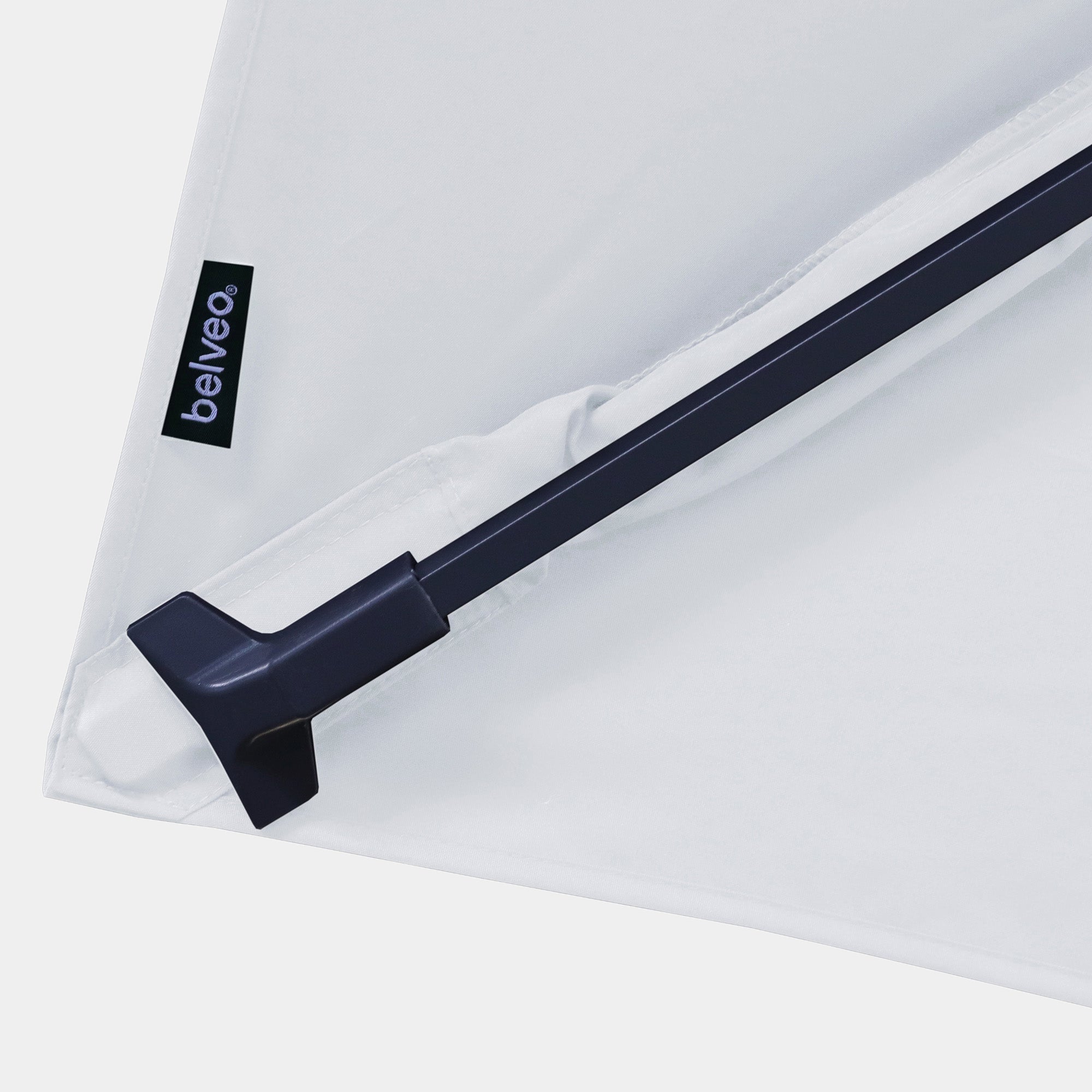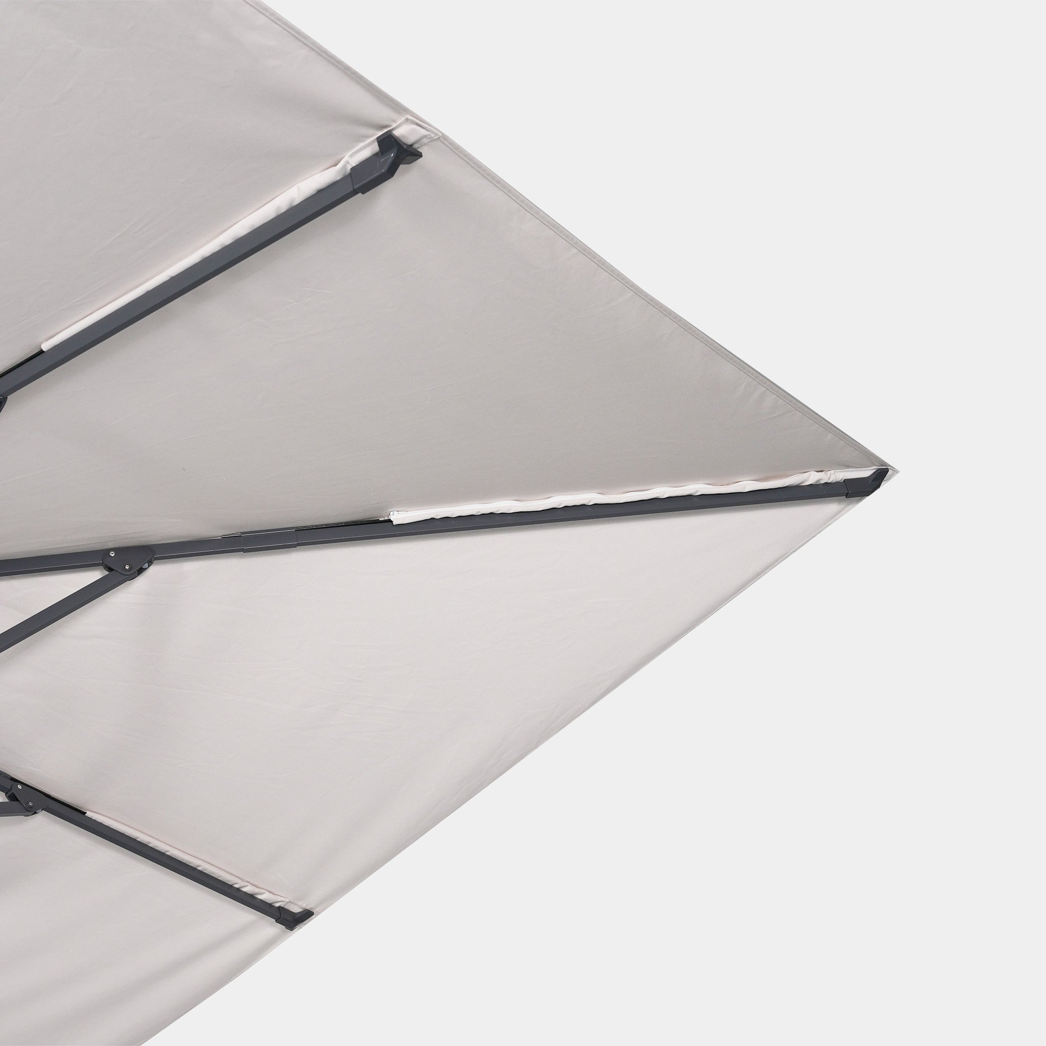 En cuanto a la funda, limpiar las manchas tan pronto como aparezcan para evitar que se incrusten. Para un mantenimiento delicado, preferir el lavado a mano: sumergir la lona en agua tibia mezclada con 150ml de jabón suave por litro, frotar suavemente con una esponja o un cepillo blando, luego enjuagar abundantemente y dejar secar al aire libre. Para las manchas más difíciles (excepto lonas poliéster), se puede usar una solución de lejía diluida: mezclar 1 litro de agua, 150ml de jabón suave y 5cl de lejía en un pulverizador, aplicar sobre toda la lona, dejar actuar 10 minutos, limpiar con una esponja y enjuagar cuidadosamente. Si ustedes lo prefieren, optar por un lavado a máquina: quitar la funda de la lona, cerrar las cremalleras y lavar a 30°C en ciclo delicado con su dosis habitual de detergente. En caso de moho, añadir 5cl de lejía (excepto poliéster) y encender la máquina inmediatamente para diluir bien el producto. Una vez limpia, dejar siempre secar la lona al aire libre. Finalmente, asegurarse de nunca guardar o cerrar la sombrilla cuando la lona todavía esté húmeda para evitar el moho, y alejarla de superficies reflectantes o fuentes de calor que puedan dañarla. Con estos simples gestos, la lona se mantendrá limpia y en perfecto estado, temporada tras temporada.