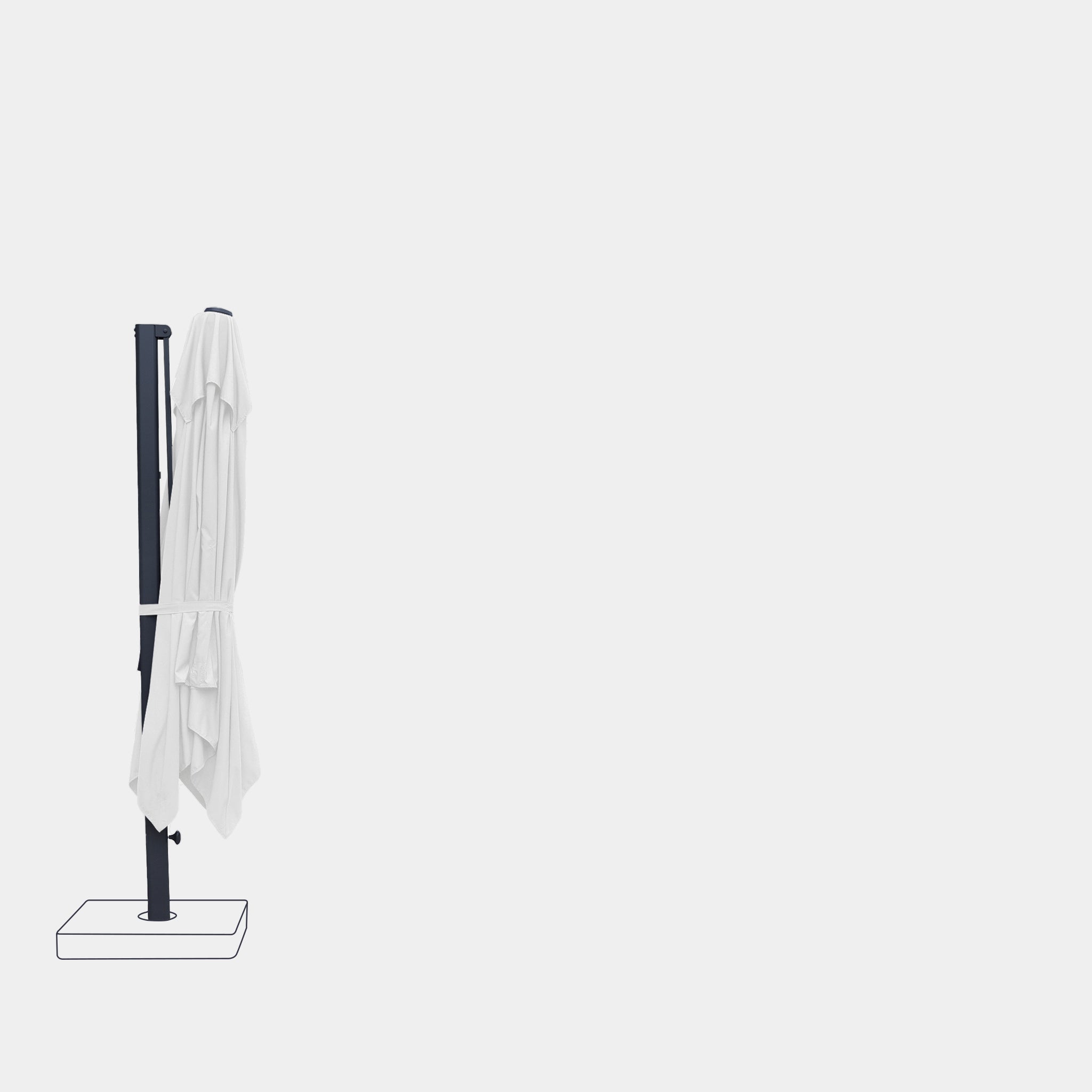 La sombrilla debe almacenarse en un lugar seco y protegido. Fundas de protección están disponibles para la venta en nuestro sitio web.