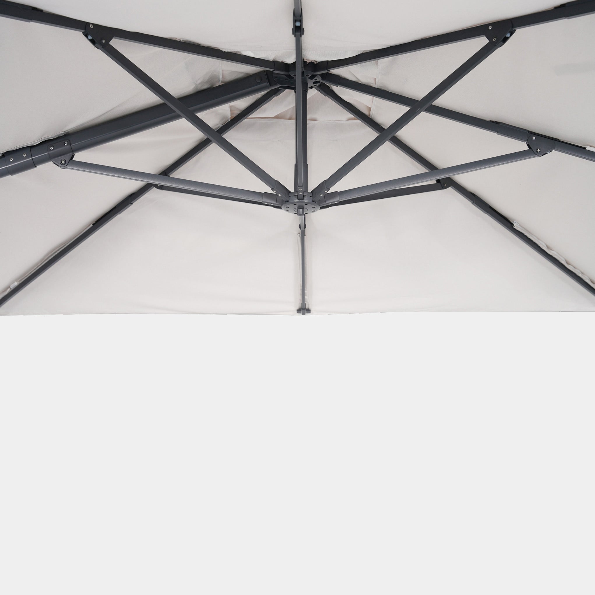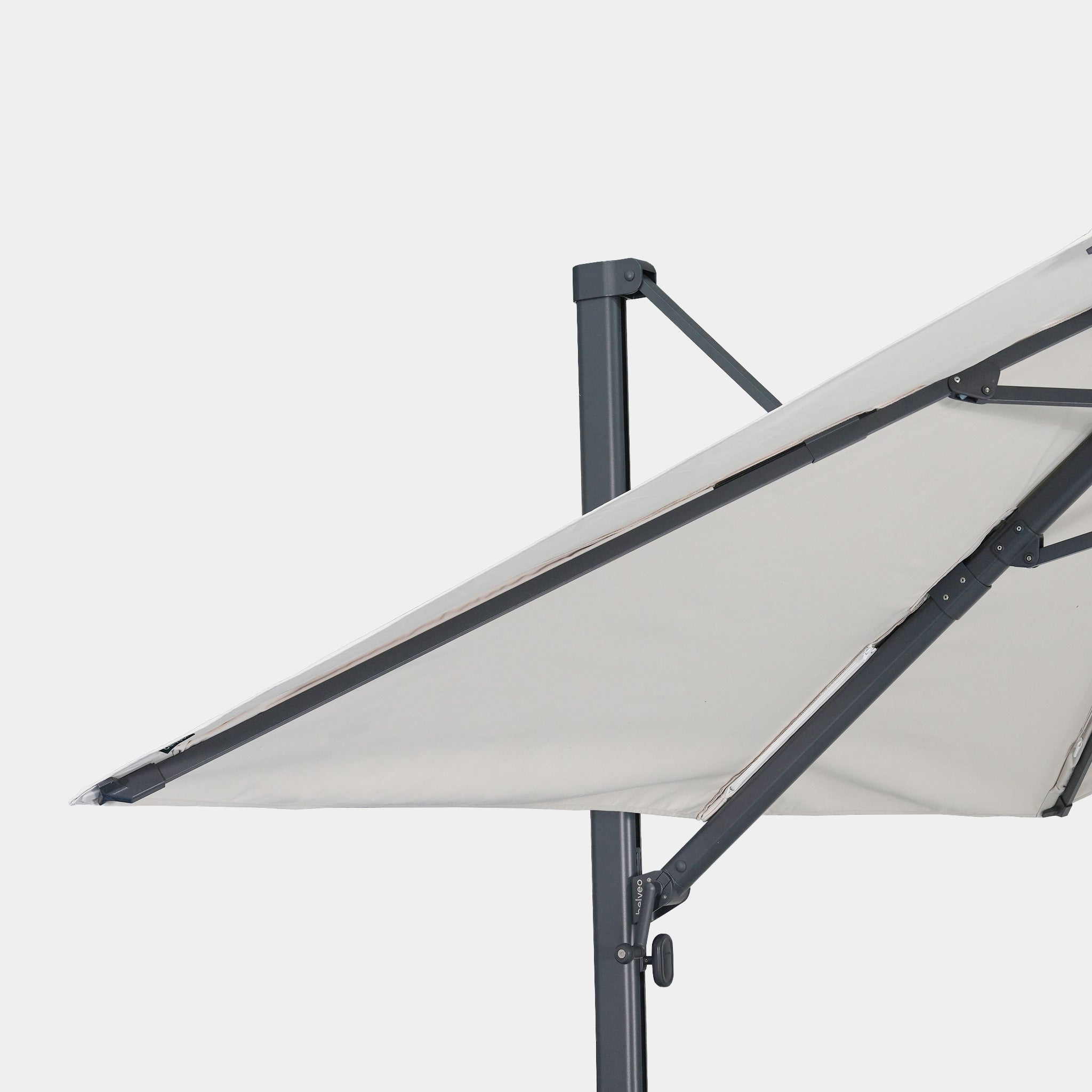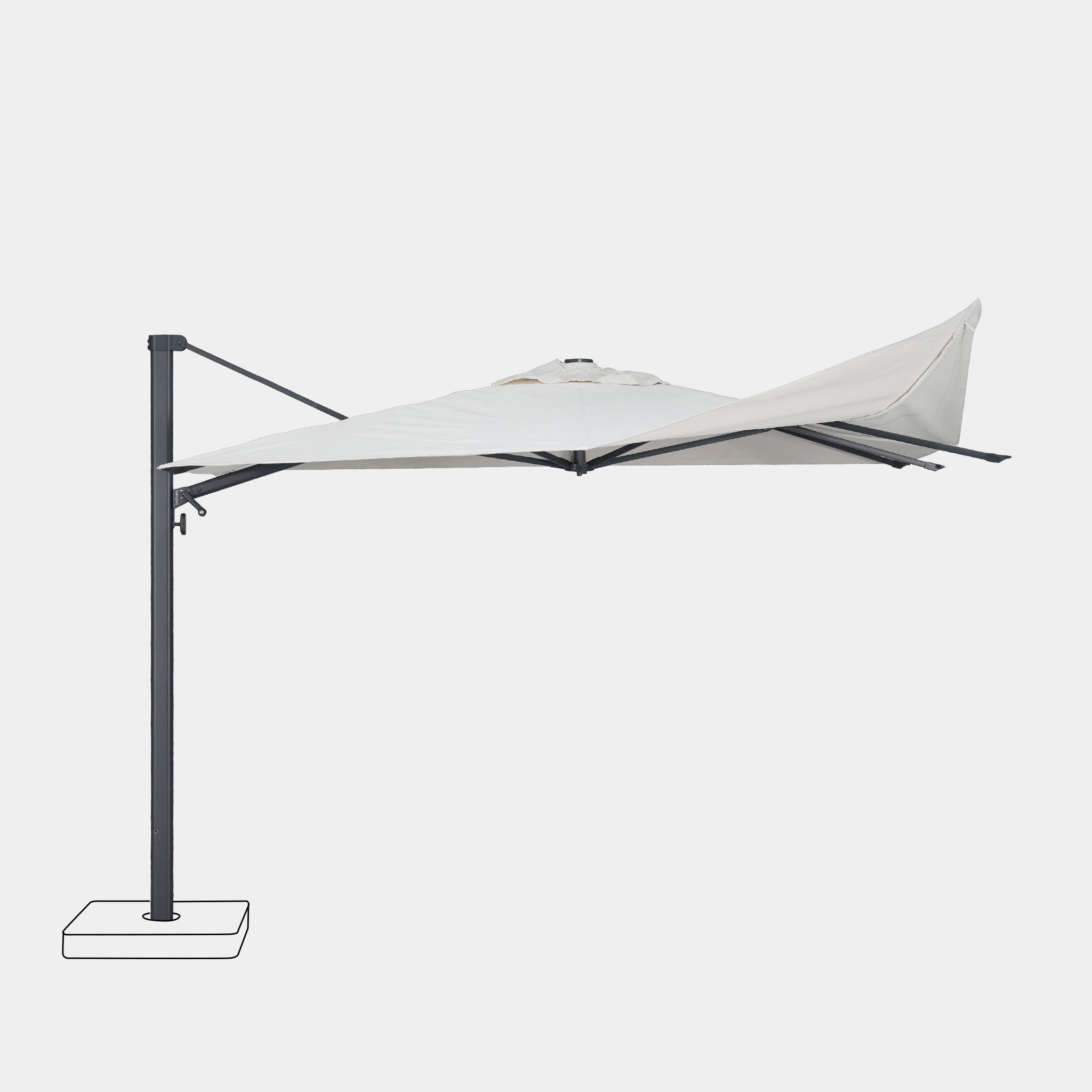 La estructura de la sombrilla excéntrica antiviento Mistral 3x3m tiene una garantía de 3 años. Garantizamos todas nuestras lonas contra la decoloración y defectos de confección durante 2 años. Las lonas olefinas y acrílicas disfrutan de una garantía extendida contra la decoloración: 5 años para la olefina y 10 años para la acrílica.